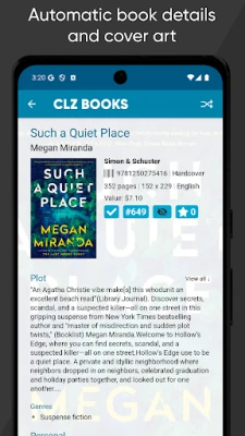 Kataloguokite knygas be pastangų. Programa automatiškai pateiks išsamius knygų duomenis, jų vertę ir viršelių atvaizdus. Lengvai tvarkykite savo kolekciją ir atraskite naujų detalių apie kiekvieną knygą.