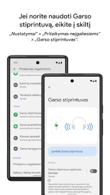 Garso stiprintuvas padeda neprigirdintiems asmenims geriau girdėti kasdienius pokalbius ir aplinkos garsus. Naudodami „Android" telefoną ir ausines, galėsite filtruoti, papildyti ir sustiprinti aplinkos bei įrenginio garsus, padidindami aiškumą ir supratimą.