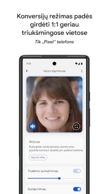 Pasaulis aplink mus kupinas įvairiausių garsų, bet kartais nepageidaujamas triukšmas nustelbia tai, kas išties svarbu. „Garso stiprintuvas" iš „Google" yra sukurtas, kad padėtų jums atgauti kontrolę virš savo klausymosi aplinkos. Ši novatoriška programa leidžia sumažinti erzinantį aplinkos triukšmą ir aiškiau atpažinti kalbą, paversdama triukšmingą aplinką ramesne ir suprantamesne. Atraskite galimybę mėgautis pokalbiais, muzika ar kitais garso šaltiniais su neprilygstamu aiškumu.