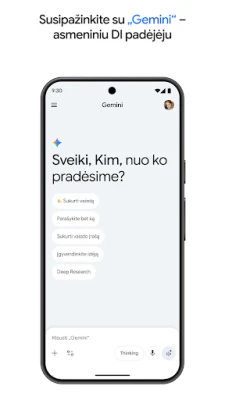 Atraskite naujas galimybes su „Gemini, savo DI padėjėju iš „Google". Ši pažangi programa padeda patobulinti jūsų kūrybiškumą, padidinti produktyvumą ir lengvai įgyvendinti idėjas. Gaukite personalizuotą pagalbą ir išmanius sprendimus kasdienių užduočių metu. „Gemini" – jūsų išmanus partneris efektyvesniam darbui ir kūrybai.