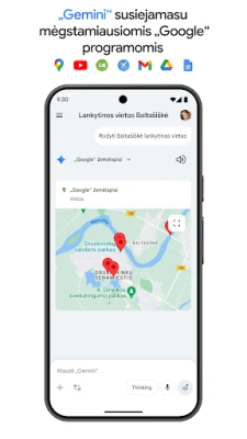 Leiskite savo vaizduotei pakilti į naują lygį su „Canvas", kur idėjos virsta apčiuopiamais prototipais. Nuo programų ir žaidimų iki tinklalapių, vizualiųjų infografikų ar net garso apžvalgų – kurkite viską, kas šauna į galvą. Sklandžiai integruokite „Gemini" su mėgstamiausiomis „Google" paslaugomis, tokiomis kaip „Paieška", „YouTube", „Google" žemėlapiai, „Gmail" ir daugelis kitų. Mokykitės efektyviau, tyrinėdami bet kokią temą per interaktyvius testus, korteles su vaizdais ir realaus gyvenimo pavyzdžius. Konvertuokite bet kokį dokumentą ar tekstą į tinklalaidę, kad galėtumėte patogiai klausytis kelyje, o norėdami generuoti ir tobulinti vizualiai stulbinančius vaizdus, aprašykite juos vos keliais žodžiais. Tam, beje, išbandykite „Nano Banana" – revoliucinę vaizdų kūrimo ir redagavimo funkciją, veikiančią su „Gemini 2.5 Flash" varikliu.