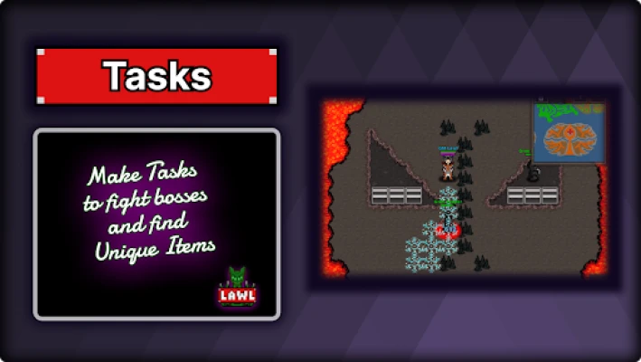 Lawl Online MMORPG – tai masyvus daugelio žaidėjų internetinis vaidmenų žaidimas. Patirkite modernų ir pažangų žaidimą su unikalia ir klasikine grafika. Tyrinėkite nuolat augantį pasaulį, prisijunkite prie draugų ir kovokite su galingomis būtybėmis bei bosais.