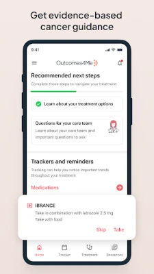 Susidūrus su vėžio diagnoze, kiekviena informacija yra aukso vertės, tačiau dažnai sudėtinga ir sunkiai prieinama. Outcomes4Me sukurta tam, kad suteiktų Jums galią ir užtikrintumą, siūlydama suprantamą, aktualią ir įrodymais pagrįstą informaciją apie Jūsų ligą. Mūsų misija – padėti Jums aktyviai dalyvauti savo gydymo procese, perimant kontrolę į savo rankas su šia išsamia programėle, kuri telkia viską, ko reikia, vienoje vietoje.