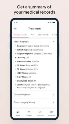 Outcomes4Me išskirtinumas slypi personalizuotuose įrankiuose, suprojektuotuose pagal Jūsų unikalią situaciją. Mūsų pažangi dirbtinio intelekto technologija integruoja NCCN Clinical Practice Guidelines in Oncology (NCCN Guidelines®) gaires, paverčiant sudėtingas klinikines rekomendacijas į Jums lengvai suvokiamą informaciją. Gausite asmeninius gydymo plano pasiūlymus, vaistų duomenis ir alternatyvias procedūras, remiantis Jūsų medicininių įrašų istorija. Be to, programėlė kuruoja aktualias naujienas, susijusias su Jūsų diagnoze, ir padeda rasti tinkamiausius klinikinius tyrimus Jūsų pasirinktoje vietoje. Visa Jūsų medicininė dokumentacija bus sujungta į vieną, aiškią ir patogią ataskaitą.