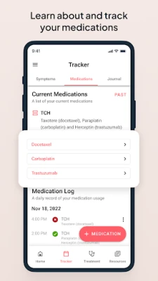 Aktyviai stebėkite savo savijautą ir gydymo eigą, registruodami simptomus bei medikamentų poveikį – jau po septynių dienų galite pastebėti naudingas tendencijas. Kilus klausimams ar norint pasikonsultuoti, mūsų patyrusių onkologijos slaugytojų komanda teikia skaitmenines antros nuomonės konsultacijas ir palaikymą. Programėlėje rasite ir patikrintus išorinius šaltinius iš tokių institucijų kaip NCCN, CDC, ASCO, WHO, suteikiančius papildomos informacijos apie genomiką ir specifinius atvejus. Outcomes4Me yra visiškai nemokama vartotojams ir visuomet tokia išliks, siekiant, kad kokybiška informacija būtų prieinama visiems. Programėlė šiuo metu skirta krūties, nesmulkiųjų ląstelių plaučių ir prostatos vėžiu sergantiems pacientams. Mūsų atsidavusi ekspertų komanda, turinti ilgametę patirtį onkologijos ir gyvybės mokslų srityse, yra pasirengusi padėti Jums gauti reikiamą priežiūrą ir informaciją be jokių papildomų išlaidų.