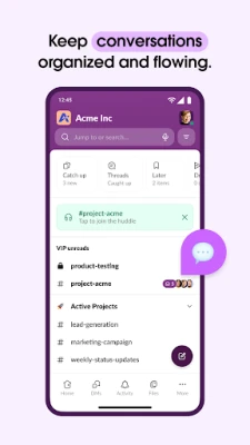 Slack yra pagrindinė vieta, kurioje jūsų verslas klesti, o komandos dirba sinchroniškai. Tai ne tik pranešimų siuntimo programa, bet ir išmani darbo erdvė, vienijanti susitikimus, dokumentų bendradarbiavimą, failų dalijimąsi ir prieigą prie mėgstamų aplikacijų. Slack transformuoja bendravimą, leidžiant sklandžiai dirbti su kolegomis, klientais ir išoriniais partneriais iš bet kurios pasaulio vietos. Kiekvienam projektui ar iniciatyvai sukurti dedikuoti kanalai užtikrina tvarką ir aiškumą, padedant jūsų komandai susitelkti į esminius tikslus ir efektyviai aptarti idėjas realiuoju laiku. Čia galite akimirksniu pradėti vaizdo pokalbius, dalytis ekranu gyvoms diskusijoms arba įrašyti ir siųsti garso bei vaizdo klipus sudėtingoms mintims paaiškinti, kai tekstas tampa nepakankamas.